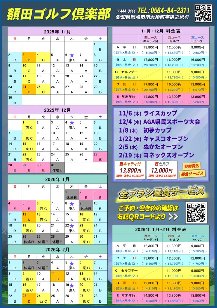 受付はプレー希望日3カ月前の同日13:00よりお電話にて承ります。