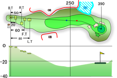1打目はやや右側狙い ※ 左右OBだが特に左のOBが出やすい